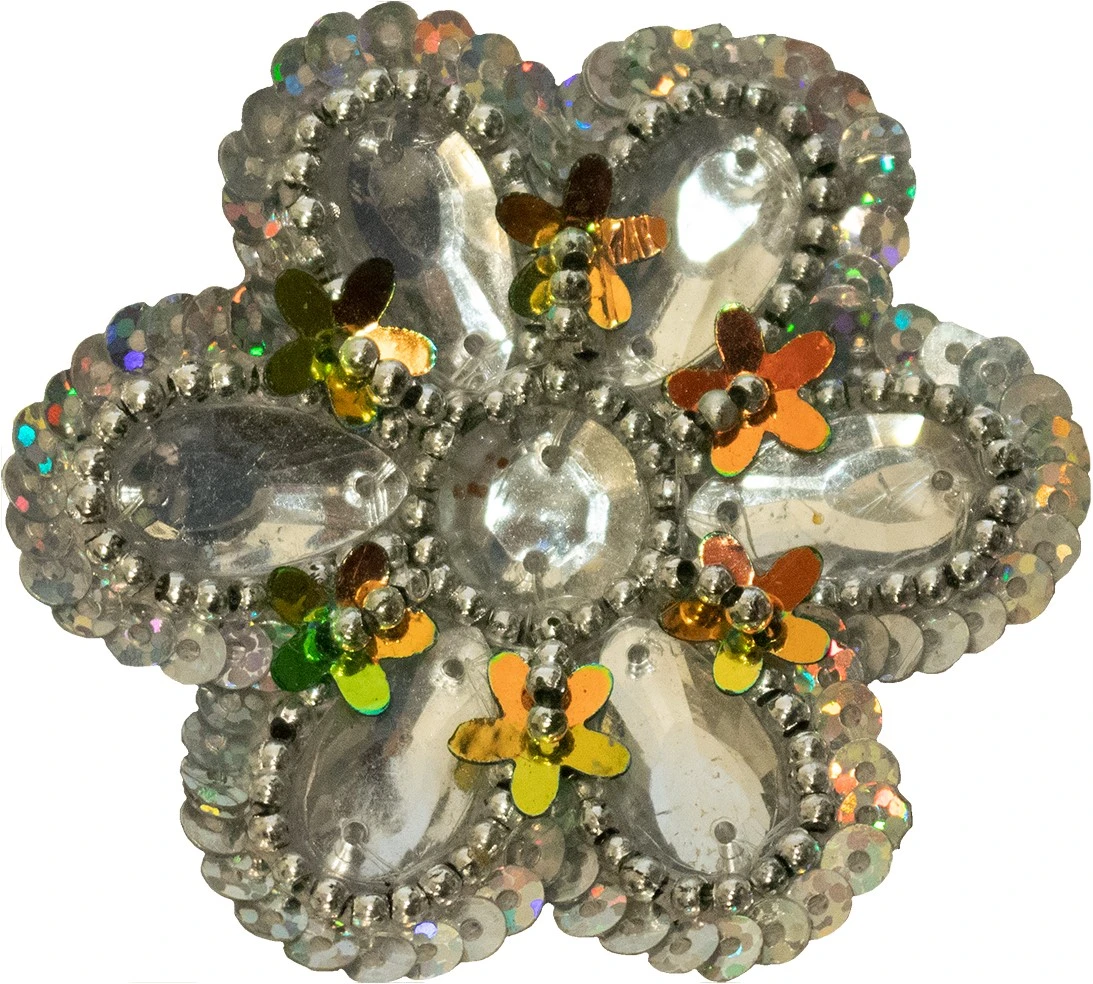 Leuke bloemen applicatie. Deze is eenvoudig te verlijmen op bijvoorbeeld een tas, hoed of jas.