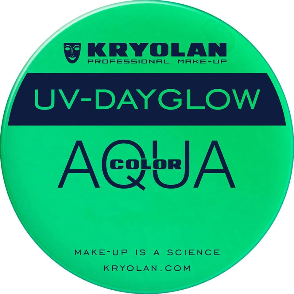 Aquacolor UV-Dayglow is een vet vrije water Make-up. Met het pigmentgehalte van ongeveer 50 % is deze make-up bijzonder kleurintensief en licht al op bij normaal daglicht. U kunt het op het lichaam aanbrengen maar ook op uw kleding, onder blacklight is het effect nog sterker.