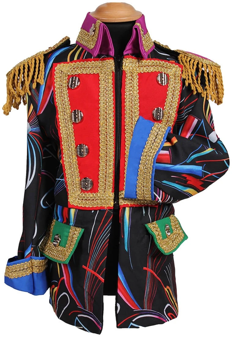 Details: afgewerkt met goudkleurig band, sierknopen en epauletten