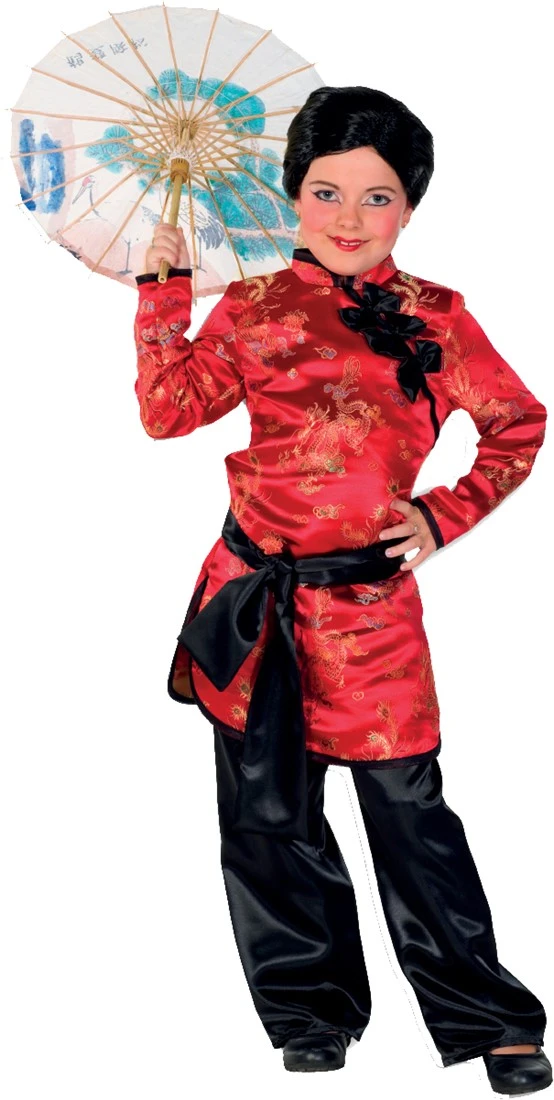 Een erg mooi China Girl rood kostuum, bestaande uit een broek en bovenstuk.