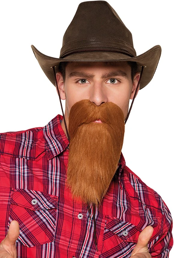 Bevestiging: plakrand aan de achterzijde waarmee je de snor en baard op je gezicht kan plakken