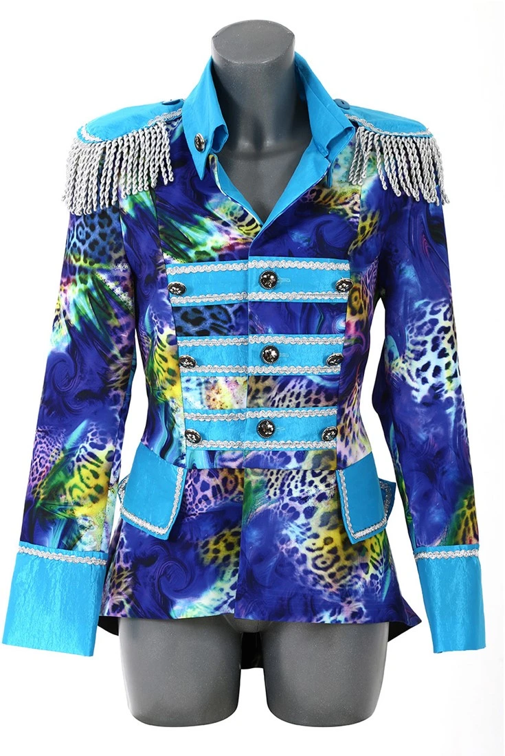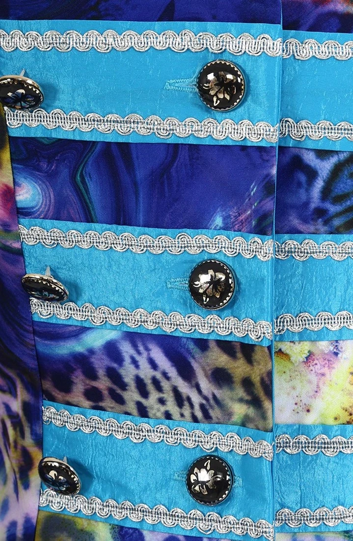 Details: licht blauwe stroken voorzien van zilveren details zoals knopen met een bloem er op. De epauletten zijn af te nemen