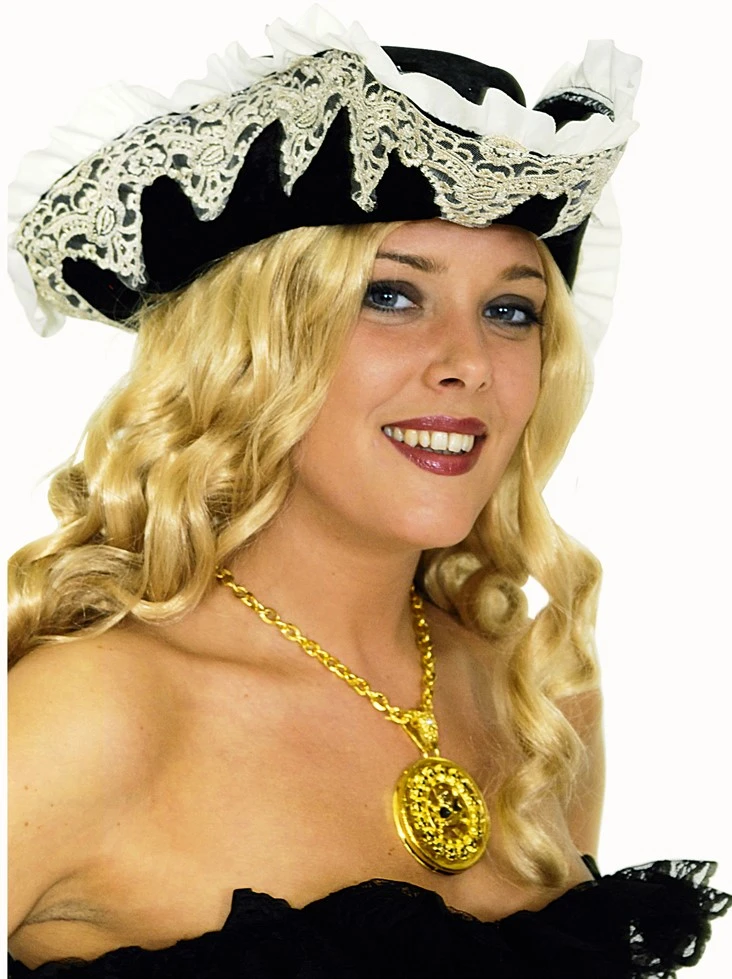 Stoere luxe piraten steek, mooie steek afgezet met kant. Zeer gedetailleerd. Deze driesteek is ook verkrijgbaar in het rood.