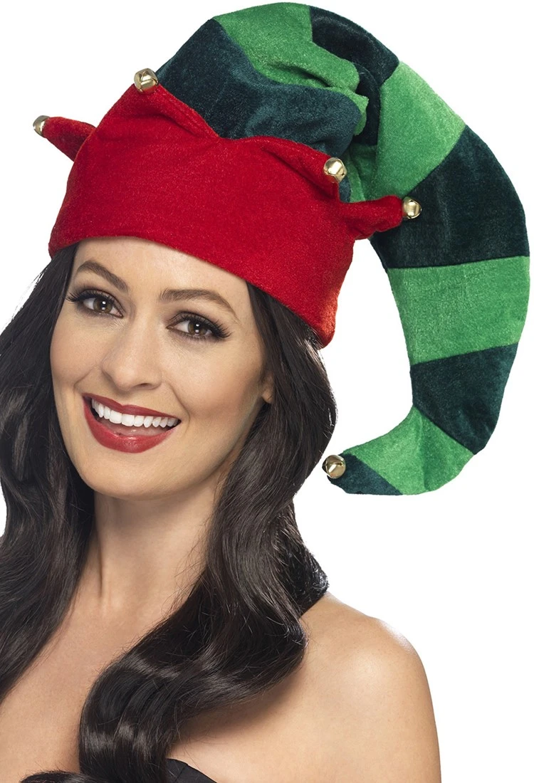 Een vrolijke elfenmuts voor als je verkleed gaat als een elf. Leuk voor bijvoorbeeld een kerstfeest!