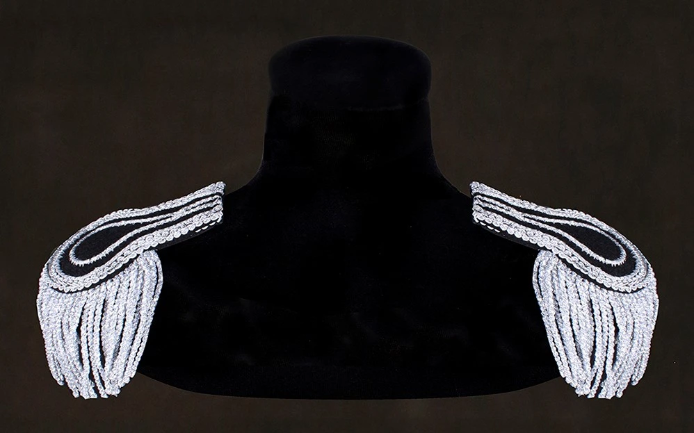 Een gave set zwarte epauletten met zilverkleurige details en rafels. Deze epauletten zijn versierd met allemaal multicolor LED’s.