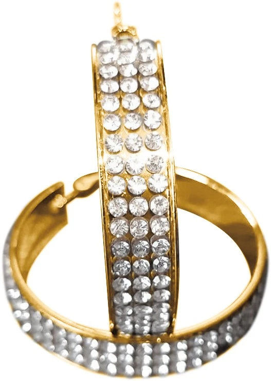 Patroon: goudkleurige oorbellen met witte strass steentjes