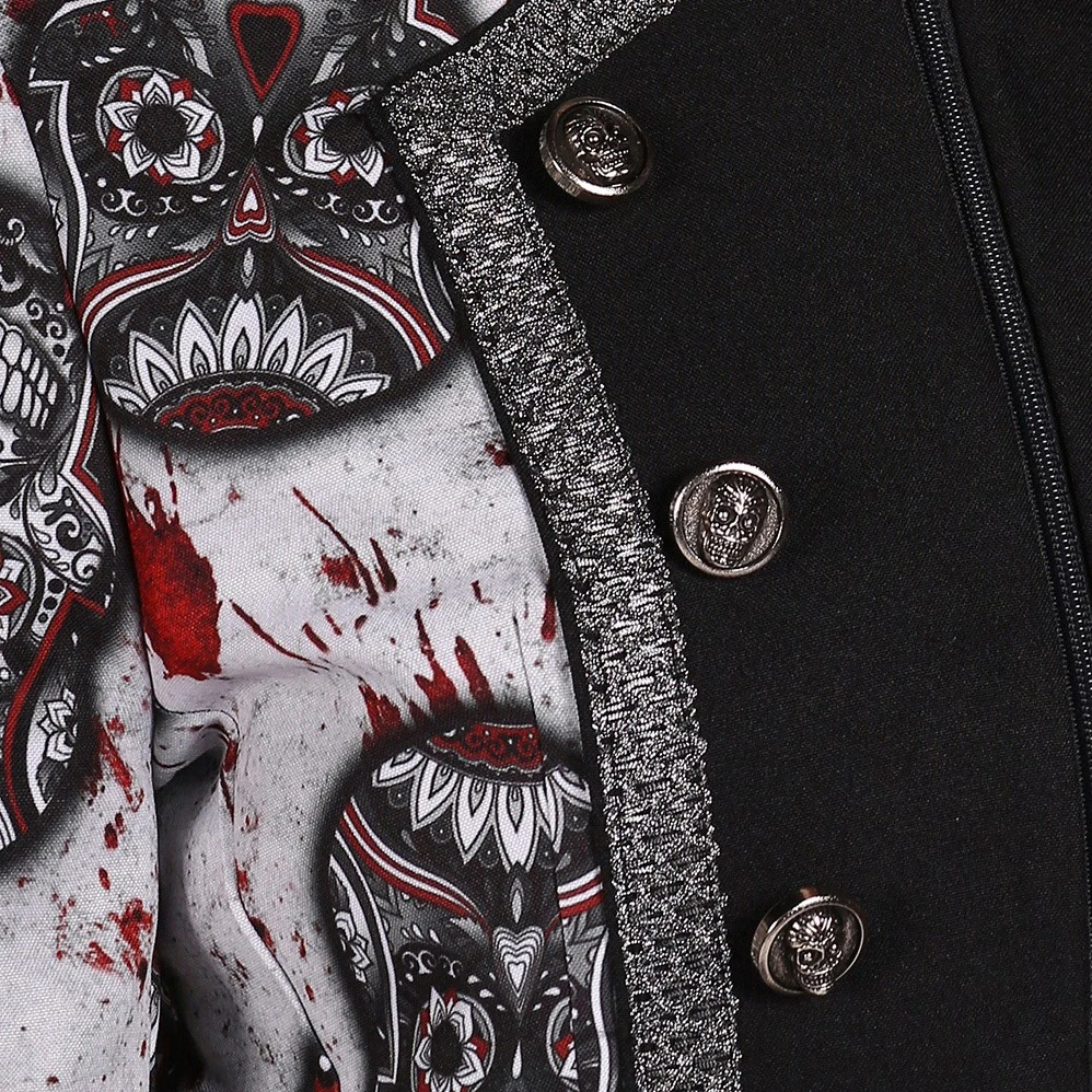 Mooie zwart/wiite heren jas met een opdruk van Mexican Skulls – Day of the Dead. De jas sluit aan de voorzijde doormiddel van een rits. Ook verkrijgbaar in een gekleurde variant. De jas is gemaakt van 100% polyester.