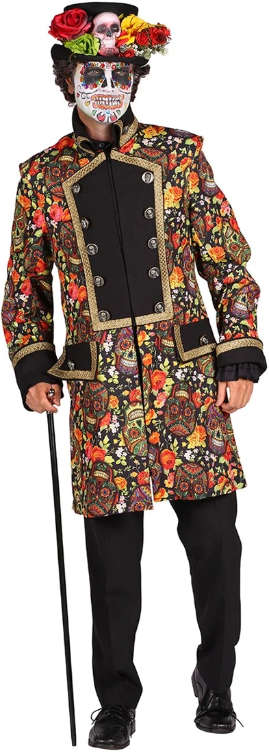 Kleurrijke heren jas met een opdruk van Mexican Skulls – Day of the Dead. De jas sluit aan de voorzijde doormiddel van een rits. Ook verkrijgbaar in een zwart/wit variant. De jas is gemaakt van 100% polyester.