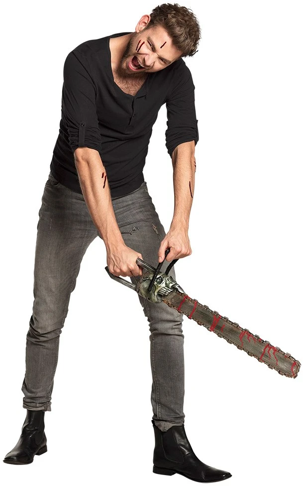 Een bloederige kettingzaag goed te gebruiken als accessoire voor Halloween, maar ook als decoratie voor een ander eng feest.