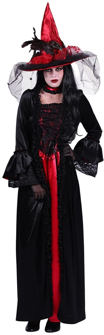 Of je nou verkleed wilt gaan als heks of misschien wel als een vampier! Met deze mooie lange jurk kun je alle kanten mee op!