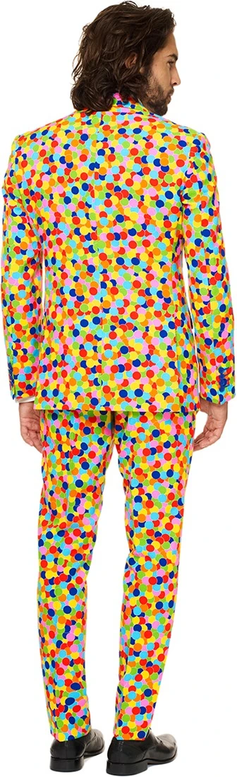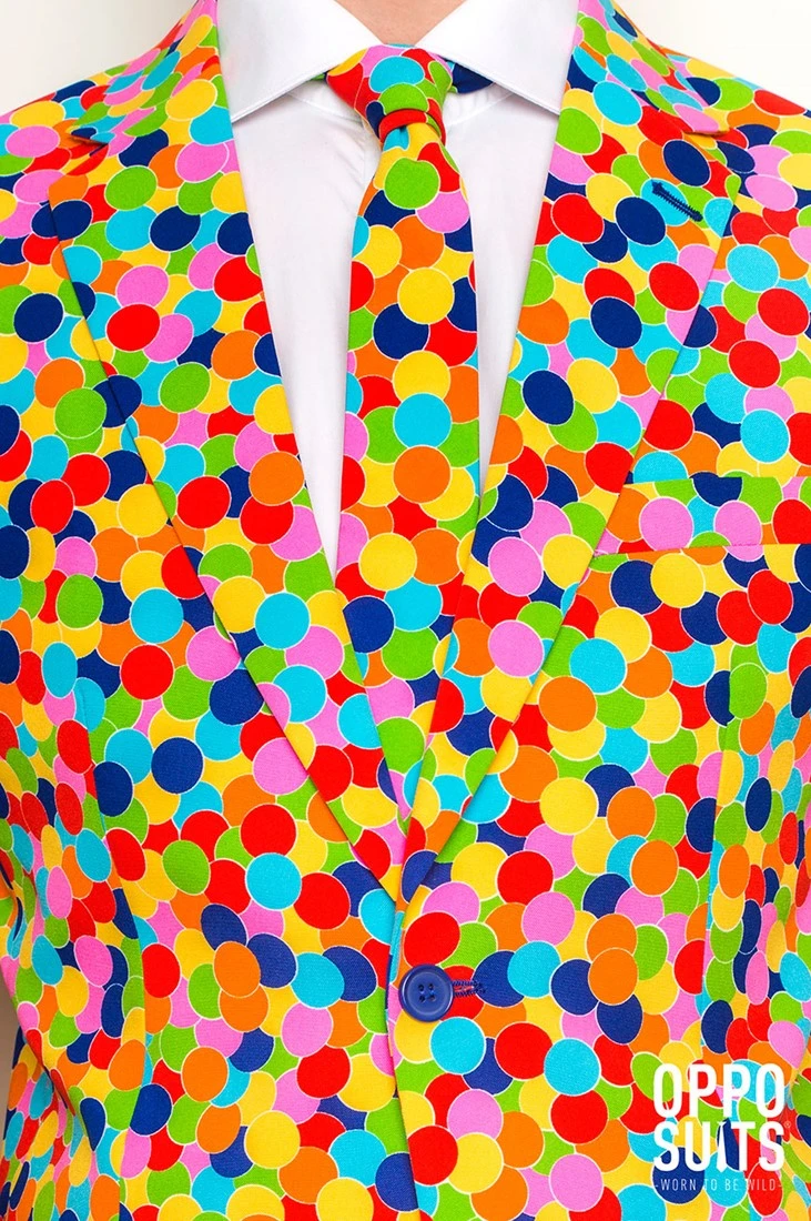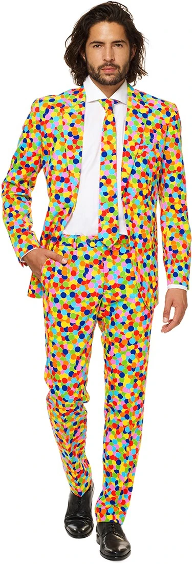 Boom! Ooit een wandelend confettikanon willen zijn? Dat kan! Laat zien dat jij feest als een beest met het nieuwe Confetteroni kostuum van OppoSuits. Stijlvoller feestvieren kan gewoon niet. Je gaat niet naar een feest, jij bént het feest! Alaaaaf!