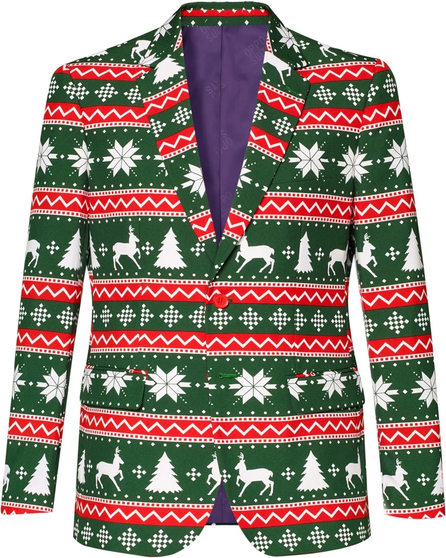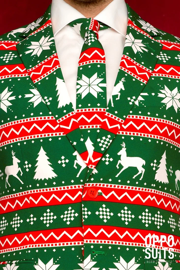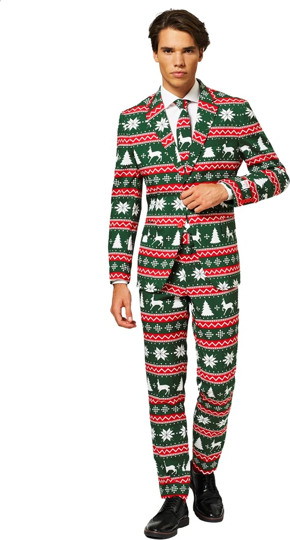 Met dit kerstpak met een feestelijk patroon is de sfeer in ieder geval al gezet voor de kerstdagen. Leuk voor een kerstmiddag, maar ook zeker origineel om te dragen naar een kerstdiner.