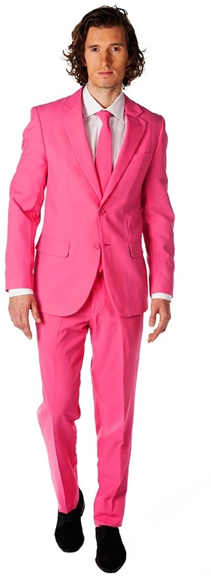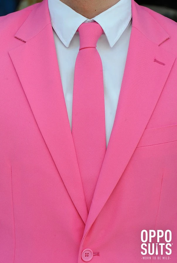 Echte mannen dragen tegenwoordig felroze! Durf jij op te vallen in een publiek van saaie kleuren? Dan is dit knalroze pak een echte must!