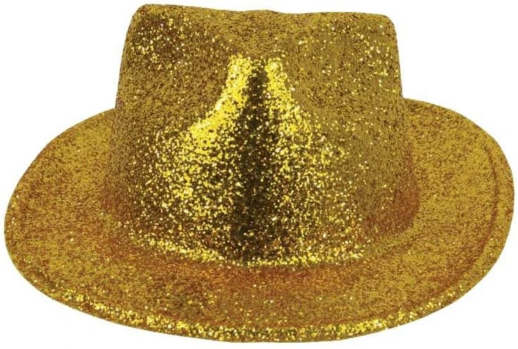 Hoed Borsalino Glitter Goud (plastic). De hoed is 1 maat. Dit hoedje is gemaakt van plastic.