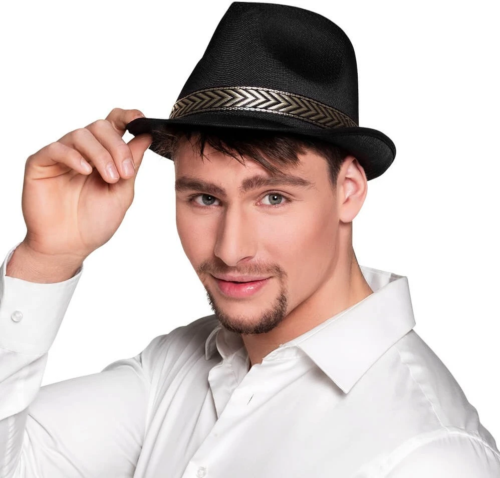 Hoed Funk Zwart. Ook geschikt als gangster hoed, of kojak hoedje. Worden ook wel een deukhoedje of gleufhoedje genoemd.