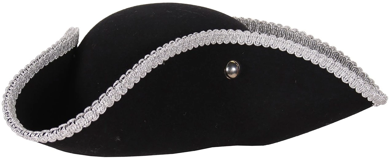 Wat is een piraat of kapitein zonder driesteek? Die mag natuurlijk niet ontbreken en dus is deze luxe zwarte driesteek met zilveren rand echt iets voor jou!