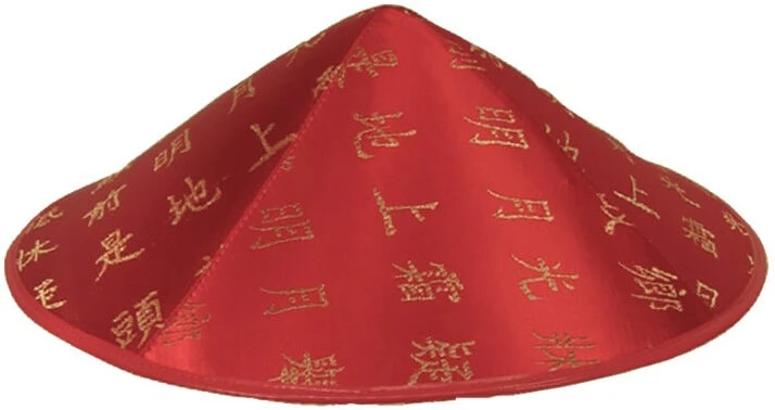 Rode Chinees hoed van vilt in het Rood met gouden tekens erop.