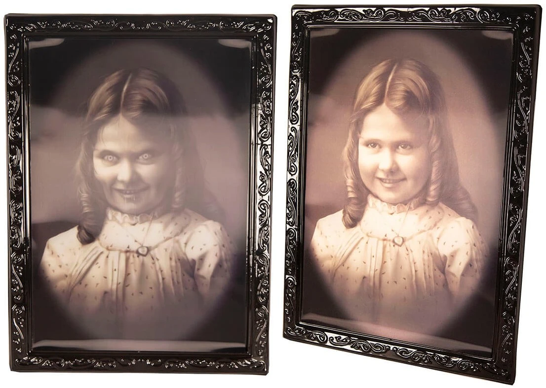 Laat iedereen enorm schrikken met een gaaf holografisch schilderij! Door vanuit een andere hoek te kijken ontstaat er een andere (angstaanjagende) afbeelding!