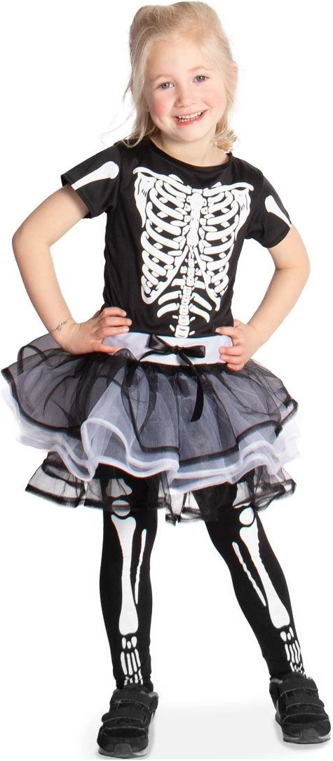 Een leuk skelettenjurkje voor meisjes. Erg leuk voor Halloween of voor een verjaardagsfeestje in Halloween stijl!