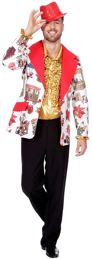 Deze mooie colbert heeft een echt klassiek thema. De witte colbert met rode accenten is voorzien van klassiek getinte figuren.
