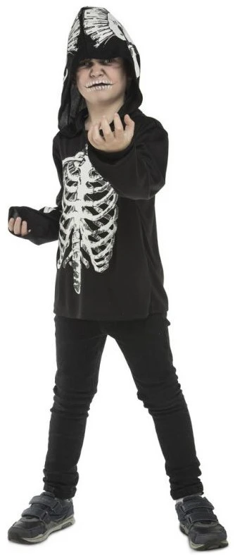 Een stoere hoodie voor kinderen waarin het lijkt alsof je vanaf je middel een skelet bent. Leuk voor ieder Halloween feest.