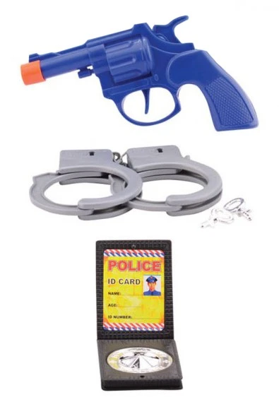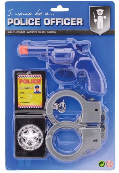 Een 3 delig accessoire setje met allerlei toevoegingen voor een stoer politiekostuum.