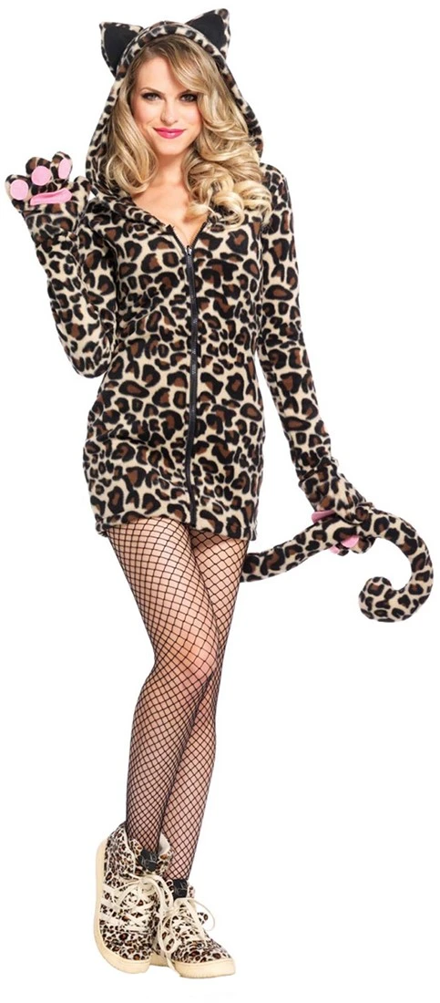 Details: fleece jurk met een vastgehechte lange gekrulde staart en een capuchon met oren