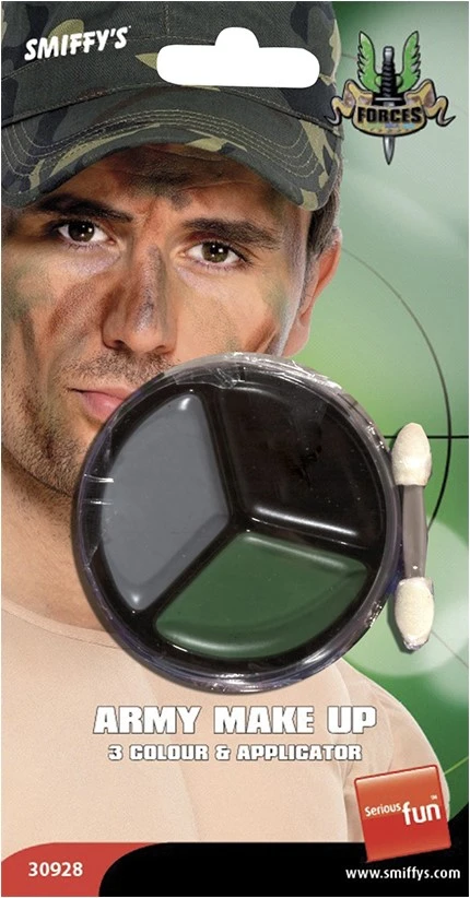 Ga je als soldaat verkleed? Dan kan een goede camouflage niet ontbreken! Dit setje heeft de belangrijkste drie kleuren die een soldaat nodig heeft om zich te camoufleren.