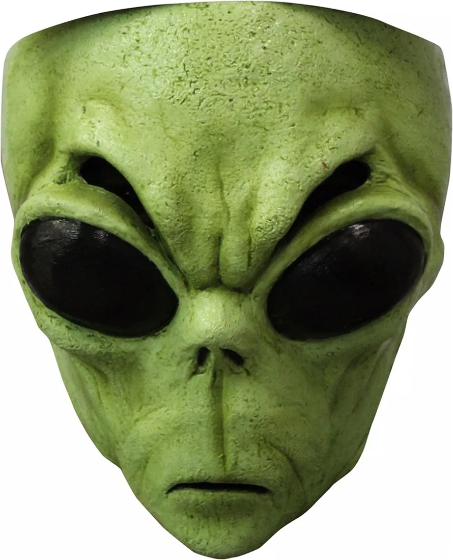 Met dit groene alien masker begeef je jezelf in buitenlandse sferen. Een gaaf masker met uitsnedes boven de ogen, waar je door heen kunt kijken. Ook zitten in de neus en oren kleine gaten. Het masker bedekt alleen je gezicht en gaat met een elastiek om je hoofd.
