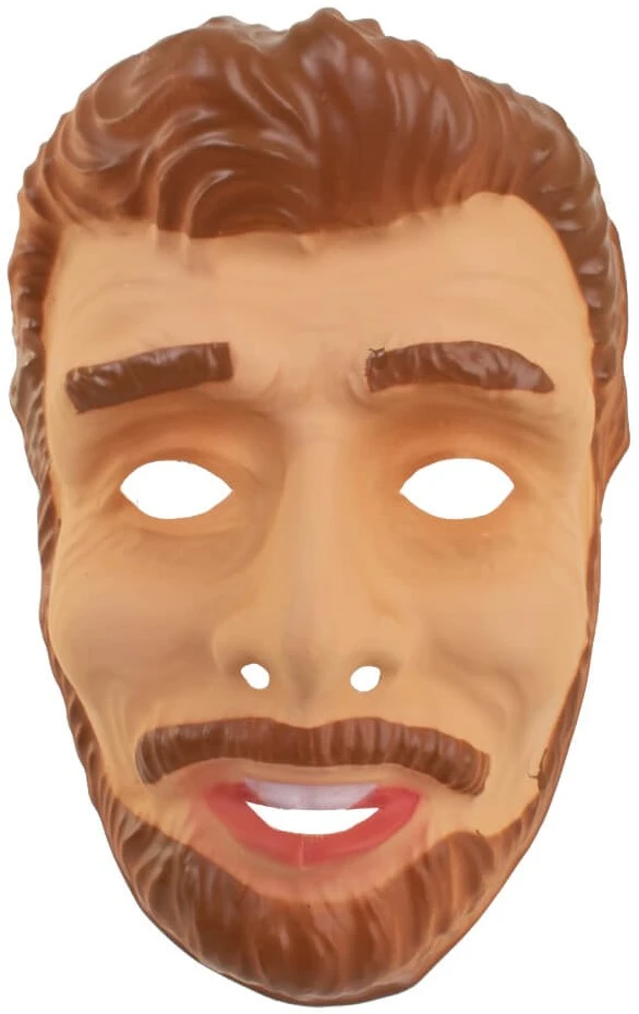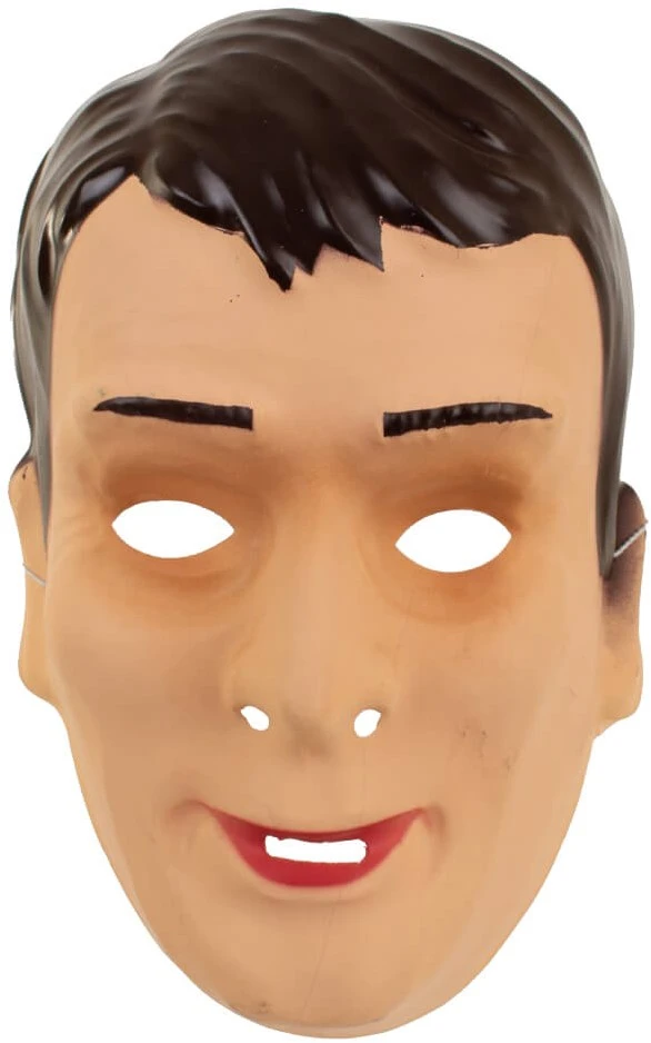 Plastic jonge-mannen-masker (met elastiek) assorti. Van de drie maskers word een willekeurig masker geleverd, prijs is dan ook per stuk.