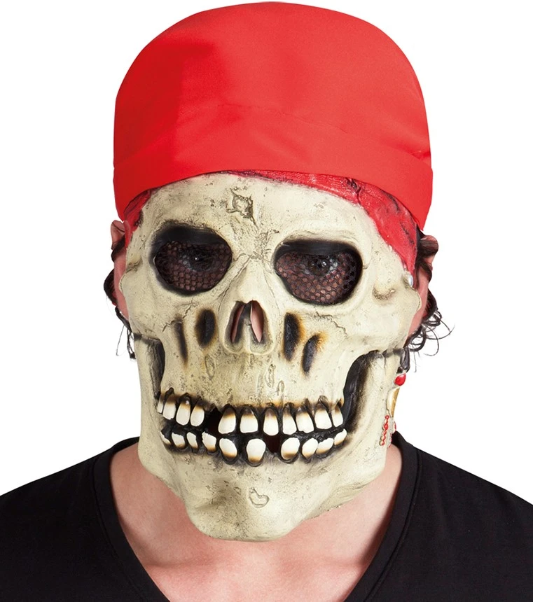 Een gaaf masker van een doodshoofd met een bandana om. Goed te combineren met een piratenkostuum of iets dergelijks.