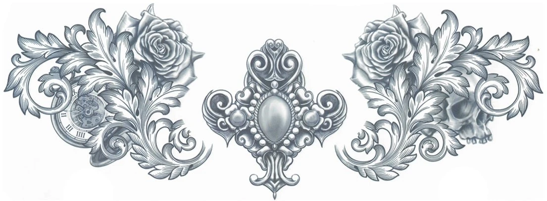 Afbeelding: sieraad, rozen, blaadjes, skull, zakhorloge