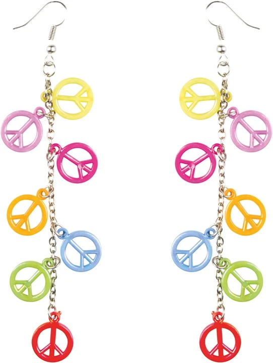 Details: zilverkleurig kettinkje met mutli gekleurde peace tekens eraan