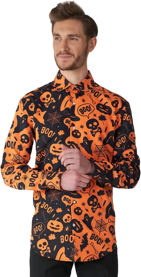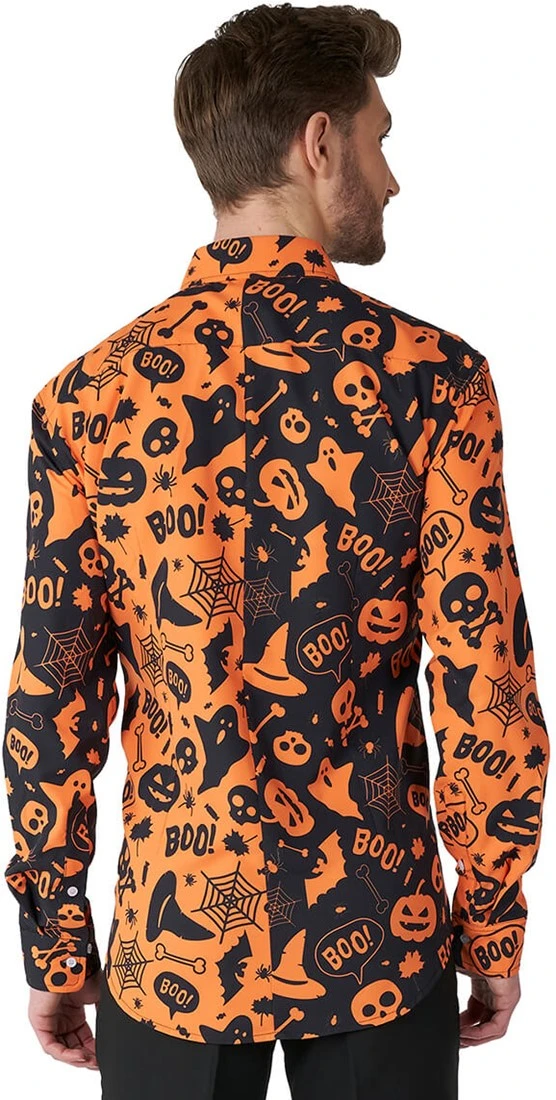 Dit overhemd van Suitmeister is een ode aan de iconen van Halloween. Pumkins, ghosts, skulls & bats! Hij zorgt ervoor dat jij er prachtig bijloopt op het Halloweenfeest. Kies voor stijl en ga voor dit iconische Halloween overhemd!