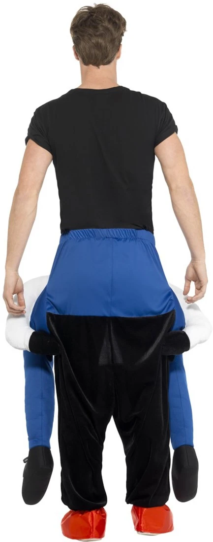 Dit griezelige kostuum doet het net lijken alsof je wordt gedragen door een clown! ???? Dit kostuum bestaat uit één geheel en is dus alleen het onderstuk. Het kostuum bestaat dus uit de creepy clown en de over de schouders hangende blauwe (gevulde) broek.