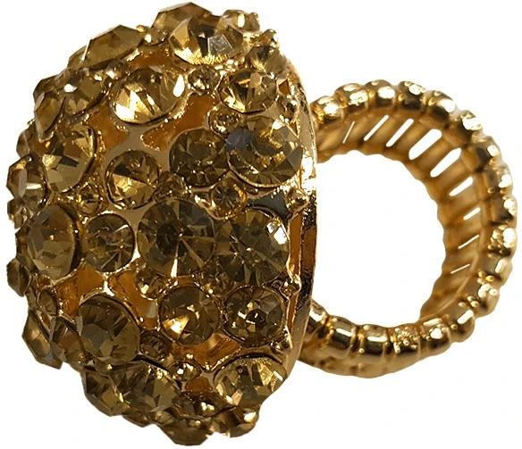 Een glinsterende gouden ring met een grote steen waarop allemaal gouden ‘diamantjes’ zitten. De musthave voor elk glitter en glamour feest. Doordat de ring elastisch is, past hij om elke vinger.