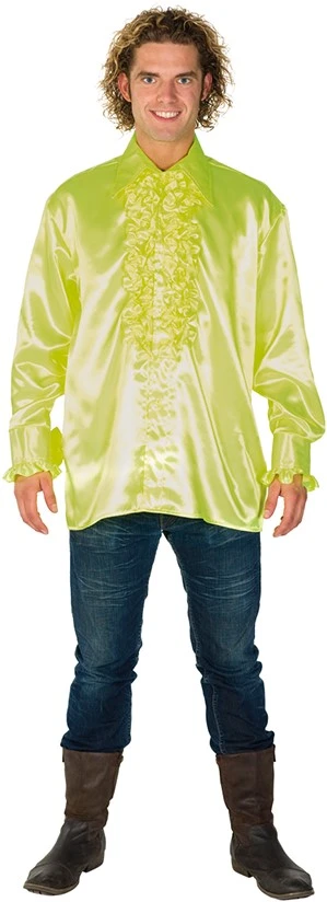 Deze zeer mooie gele ruche blouse is gemaakt van hoogwaardig satijn. Tevens verkrijgbaar in verschillende kleuren.