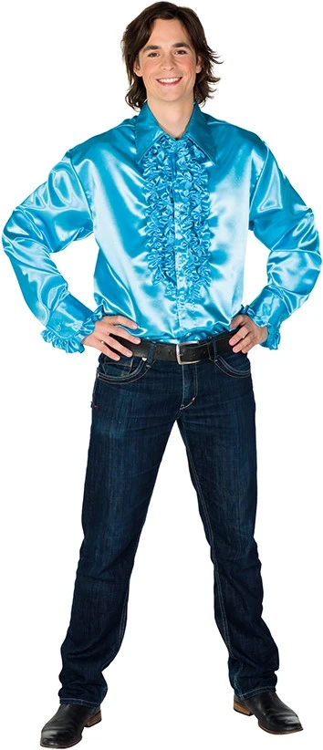 Deze zeer mooie Turquoise ruche blouse is gemaakt van hoogwaardig satijn. Tevens verkrijgbaar in verschillende kleuren.