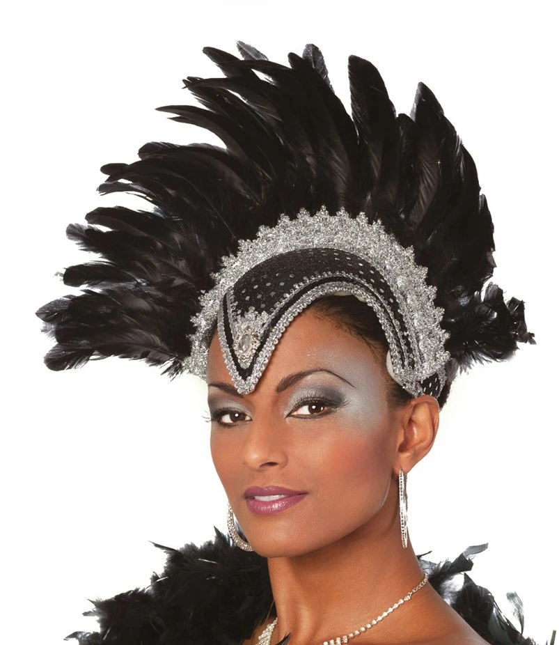 Details: Versierd metĀ zilveren galon, pailletten, verenĀ en strass steentjes
