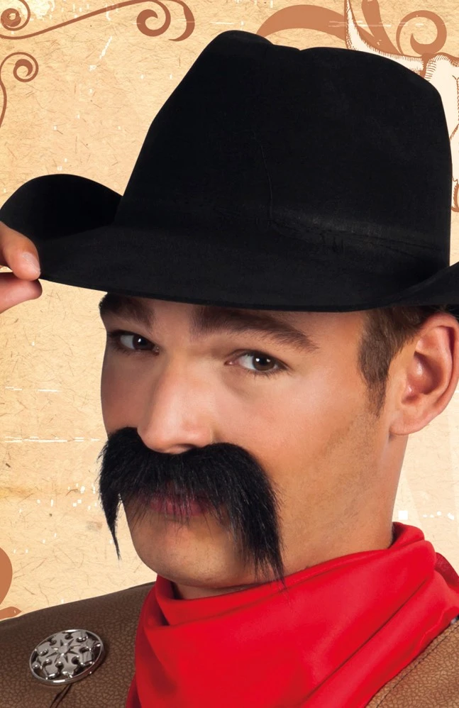 Bevestiging: plakrand aan de achterzijde waarmee je de snor op je gezicht kan plakken