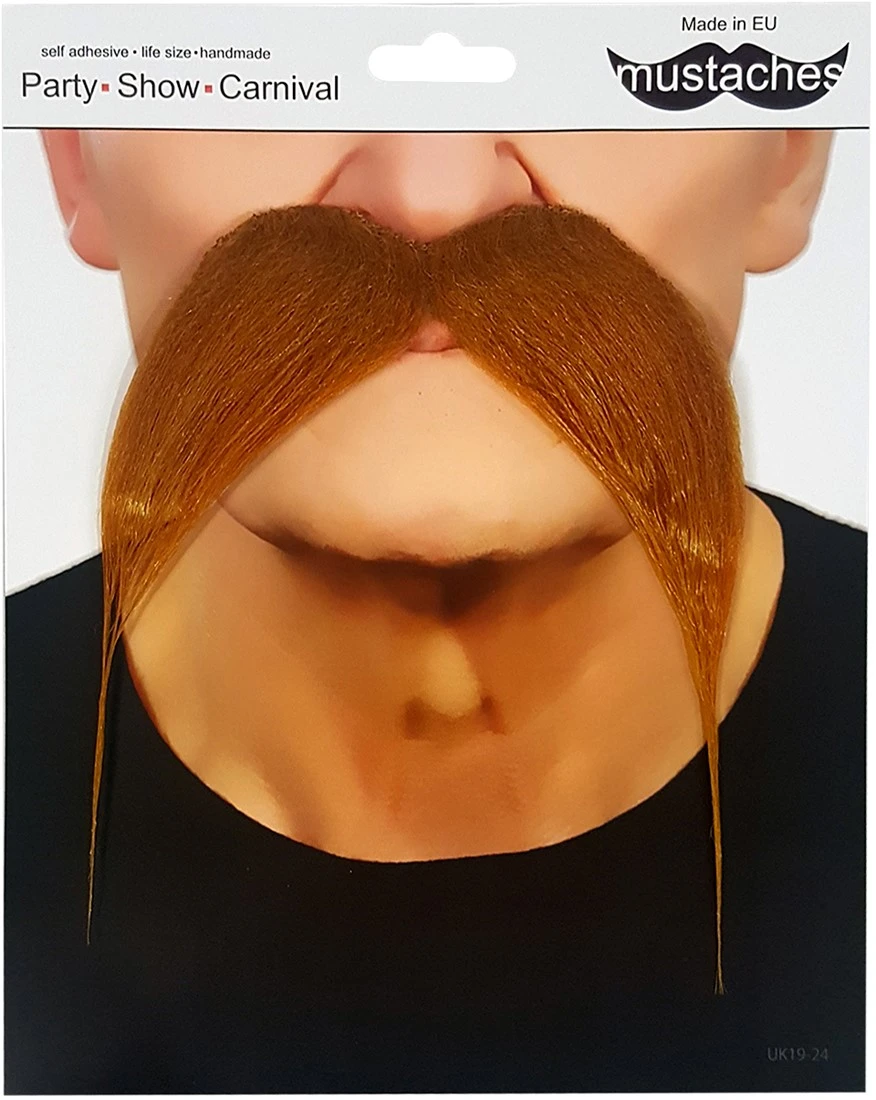 Mooie rode/bruine snor die je kan gebruiken als je bijvoorbeeld als cowboy verkleed gaat. Maar de snor kan natuurlijk ook voor andere outfits gebruikt worden! De snor heeft een breedte van ongeveer 14,5 centimeter en is zelfklevend. Echter dient er bij langer gebruik wel Mastix gebruikt te worden voor een betere hechting. Ook wanneer de snor vaker gedragen zal worden moet er Mastix gebruikt worden. Mastix is apart te verkrijgen.