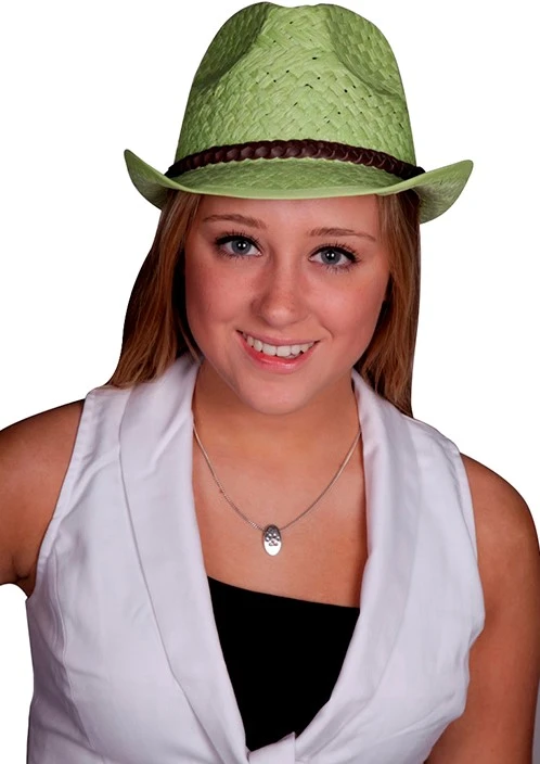 Groene tribly met een leren bandje om de hoed heen. Verkrijgbaar in een groot aantal kleuren.