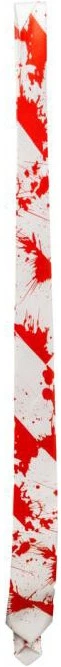 Leuke witte stropdas van satijn met bloedstrepen en bloedspetters. Maak je halloween outfit helemaal af.