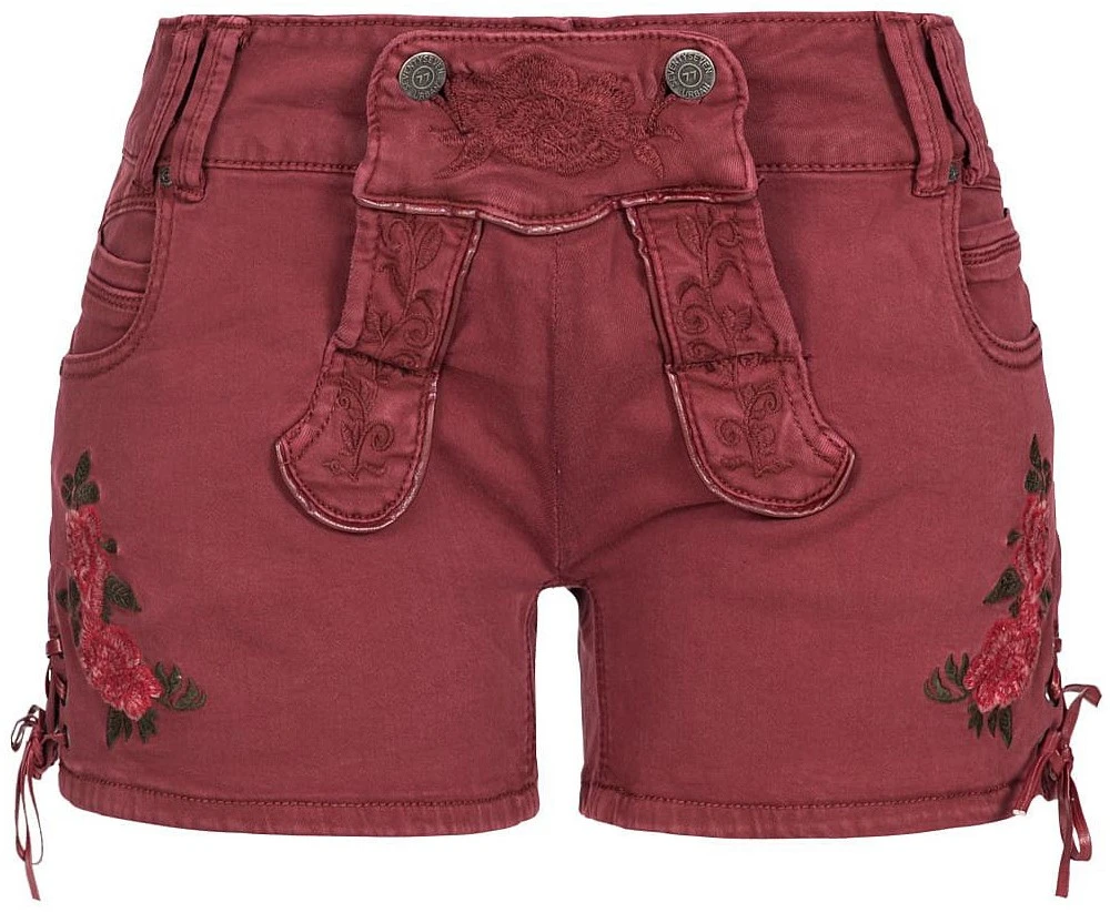 Een mooie wijn rode tiroler korte jeans! Met een leuk tiroler blouse of shirt heb je toch een casual outfit voor een Oktoberfest!