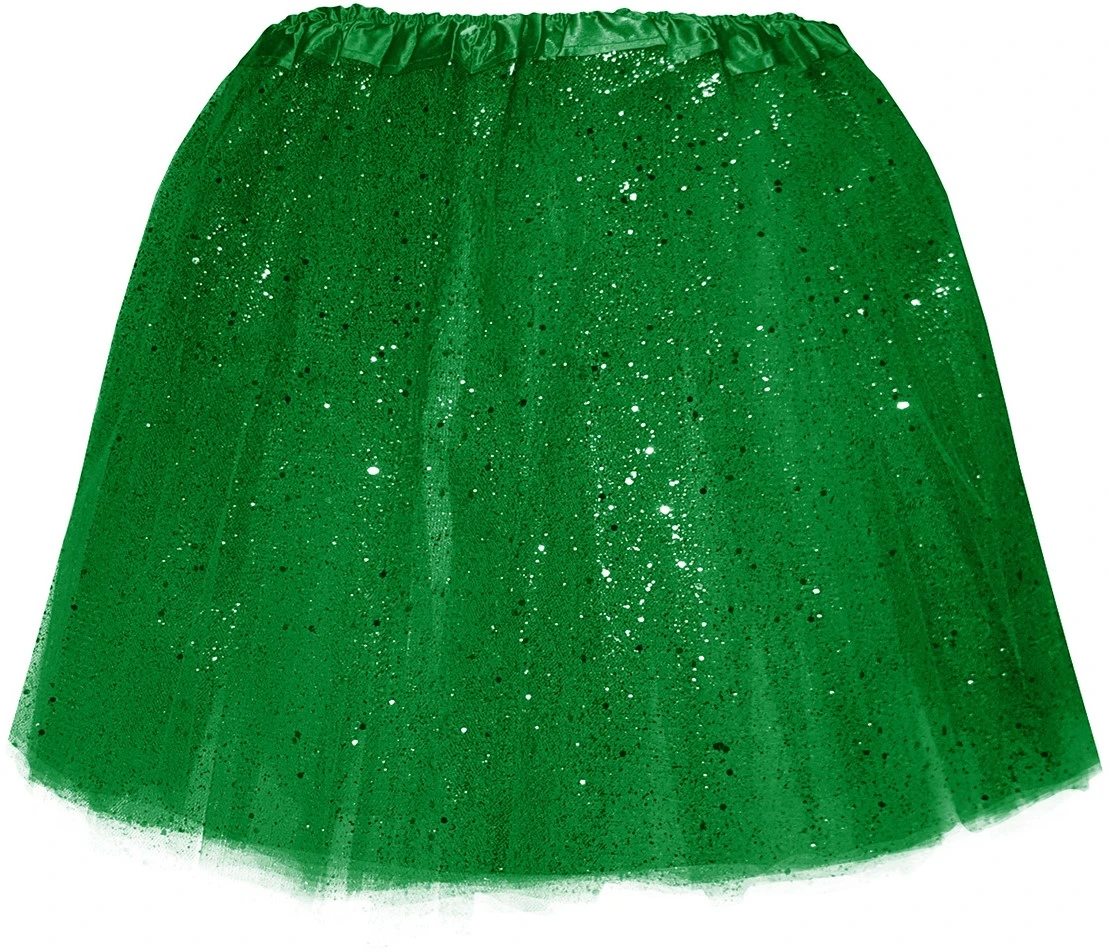 Mooie groene tule rokje vol met kleine en grote glitters. De lengte van het rokje is 41 centimeter. Het rokje is one size, maar is maximaal te dragen tot maat 38/40.