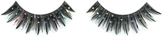 Zwarte wimpers met bonte strepen en zilveren nopjes.